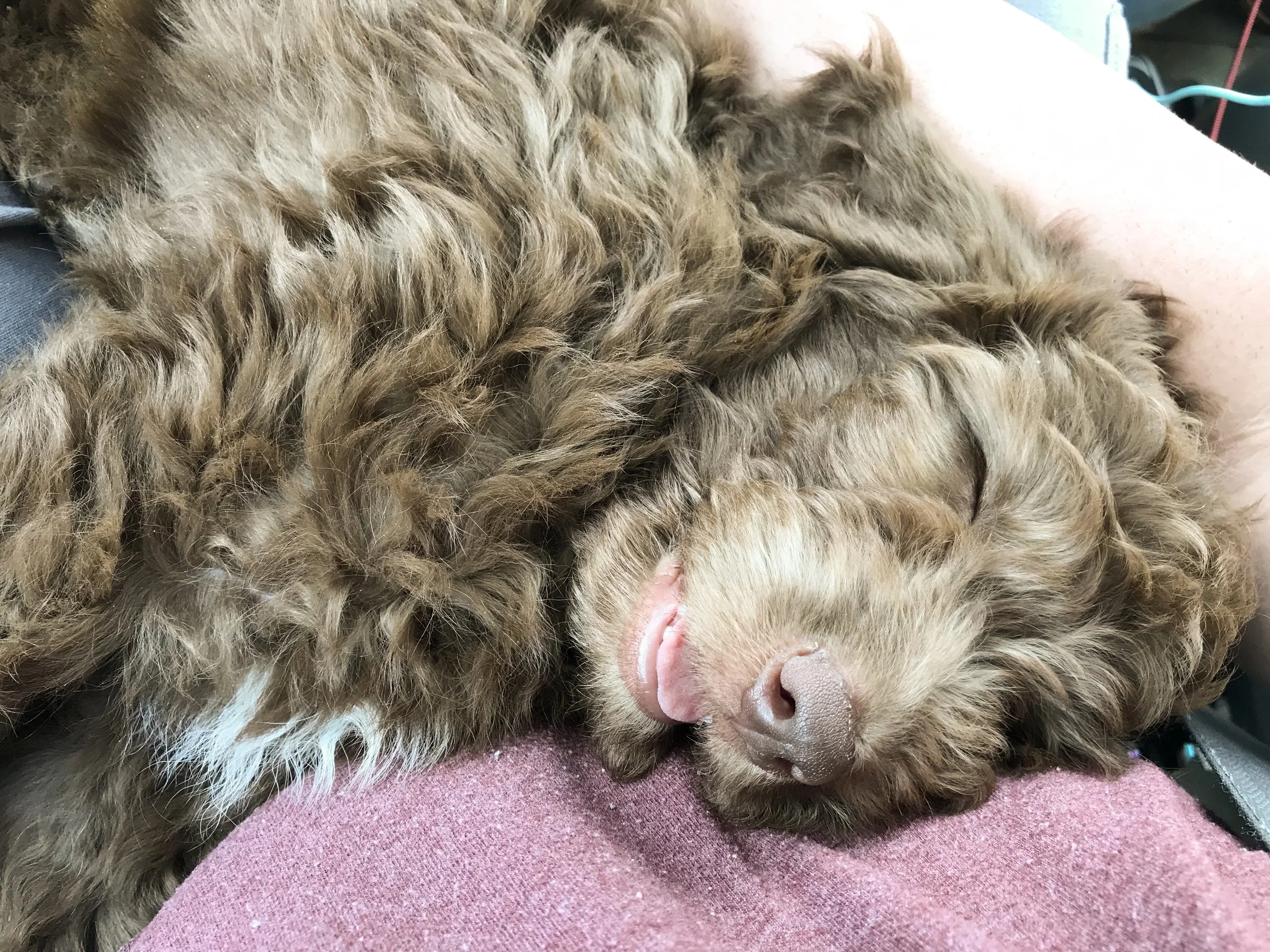 All of the puppies have done so well with traveling. We have been very impressed. they mostly ride on my lap while Rodney drives. I think riding in the front seat really helps with car sickness. The last puppy we delivered decided to ride the last hour in Rodneys lap, she climbed over there and promptly fell asleep. Mouth open and everything Lol!