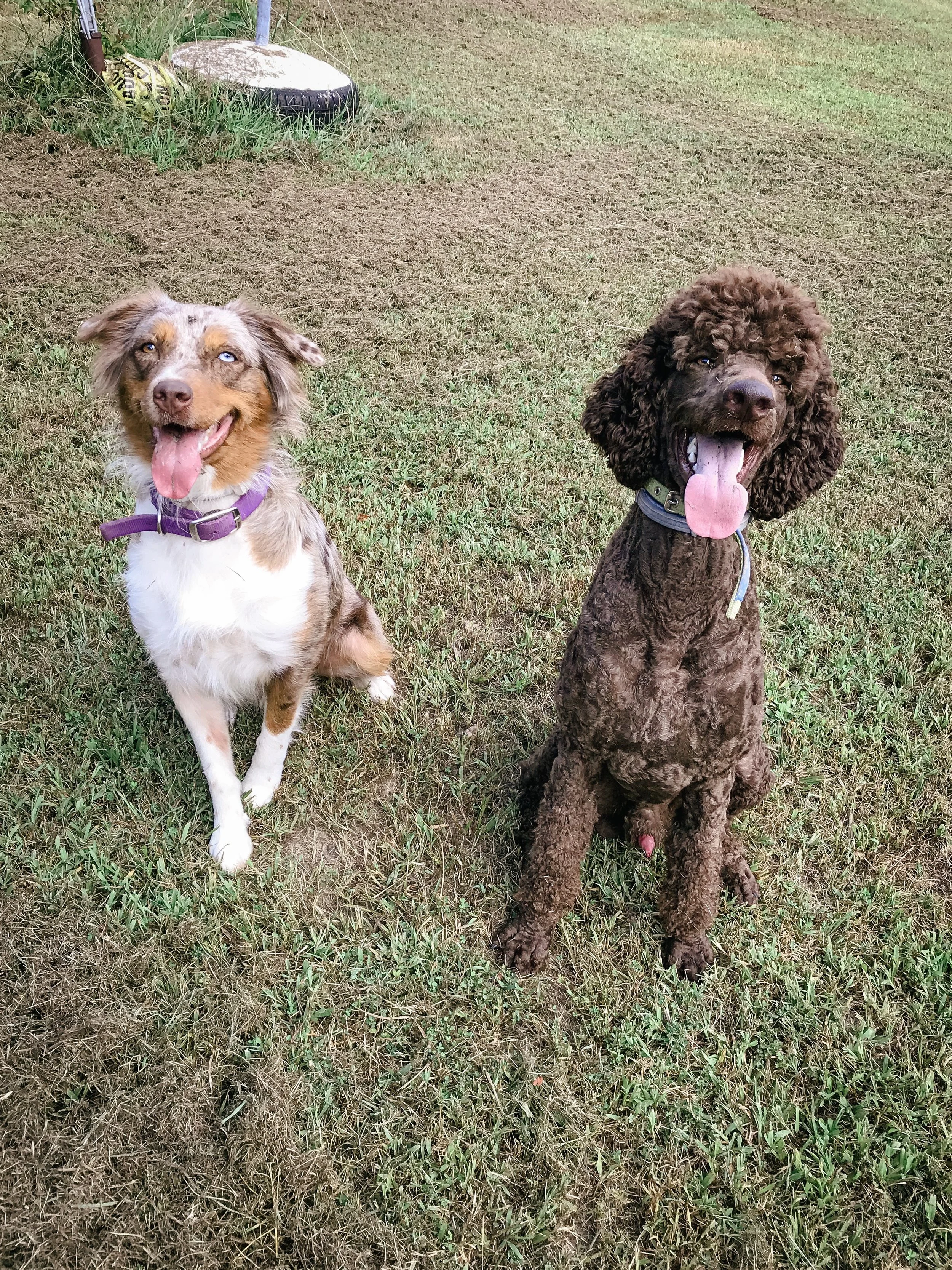 I snapped this photo while playing fetch with Ruby and Moses the other day. I was so proud to have them actually sitting in the same photo I just had to share! Ha!