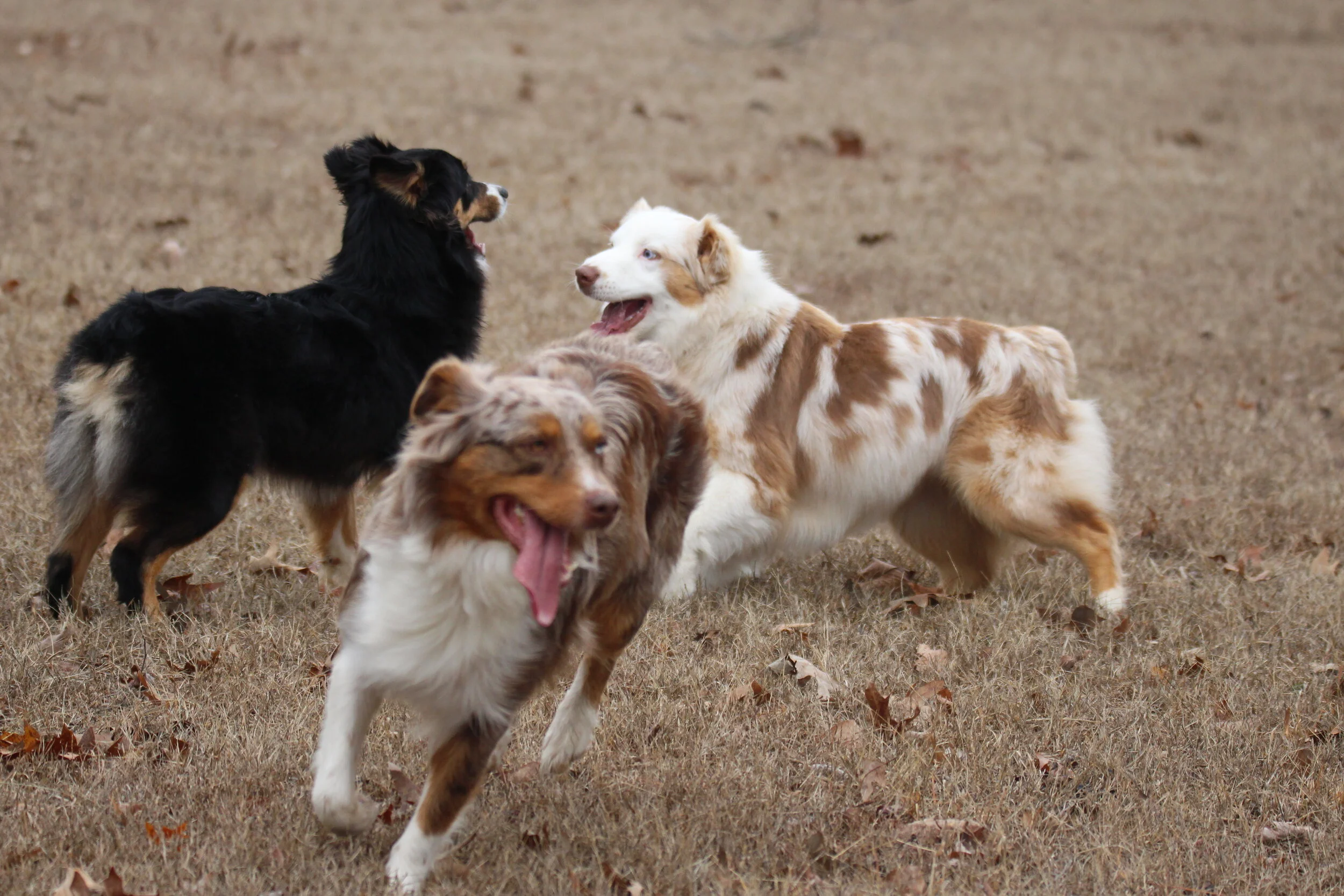 Here at Amos and Oak Doodles we feel one of the most important things for our dogs is outside play time. Australian Shepehrds especially crave exercise. While Moses is most happy chilling on the couch, Ruby much prefers to spend her time running around outside. If you get an Aussiedoodle, whether its from us or not, it’s very important to evaluate your puppies individual needs and do what is best for them. We have had puppies born here that need constant exercise and then we’ve had puppies who, just like their dad, would prefer to sleep in a quiet place. We allow our adult dogs free range of the yard a couple times a week and we also have structured playtime. Usually that’s a game of fetch or “catch the frisbee”. For young puppies and dogs - outside free time, a game of fetch and on leash walks across all sorts of terrain, especially uneven ground with grass or dirt, are best. If you are having trouble with your puppy focusing when training or being destructive, a lot of the time it stems from a lack of exercise. When you have moments of frustration, take a break, take your puppy outside and exercise him for a bit. A lot of times, that makes all the difference.