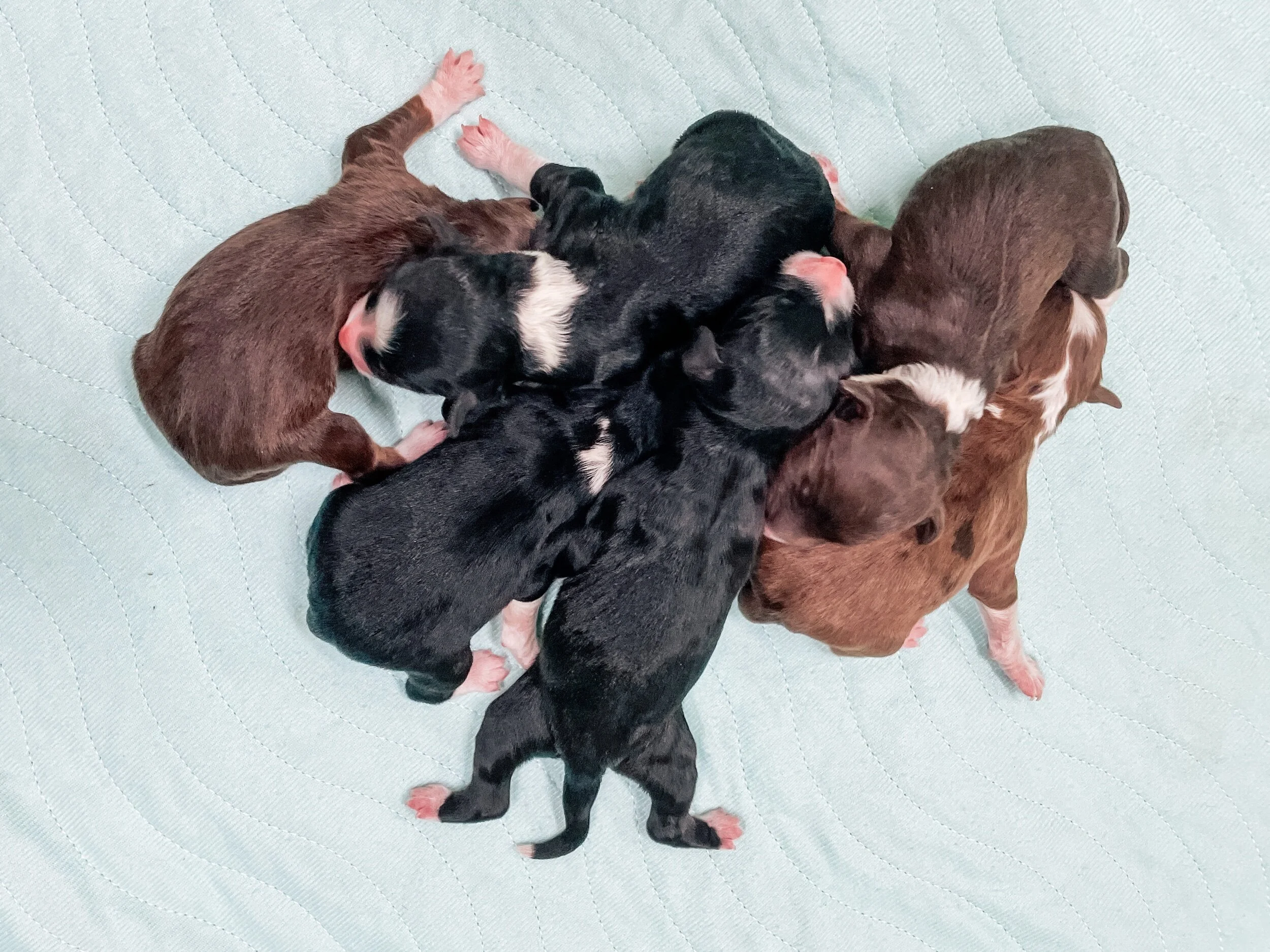 Anyway, Ruby delivered her babies yesterday! She had 10 adorable little fur beans. TEN. I was shocked, I thought for sure she’d only have 6 like she had in the past. This litter is gorgeous and so full of color. We actually have a few spots available if anyone is interested in being on the pick list. Just let me know!